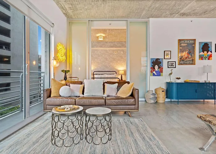 Deze 2-slaapkamer City Loft - Downtown Bayfront Pool Gym & Parking Villa ligt binnen een korte wandeling van 6 minuten van The Torch of Friendship en beschikt over een zwembad en een zonneterras voor een ontspannen verblijf. Deze villa bevindt zich in de Downtown Miami wijk van de stad en biedt een casino om uw bezoek nog leuker te maken.